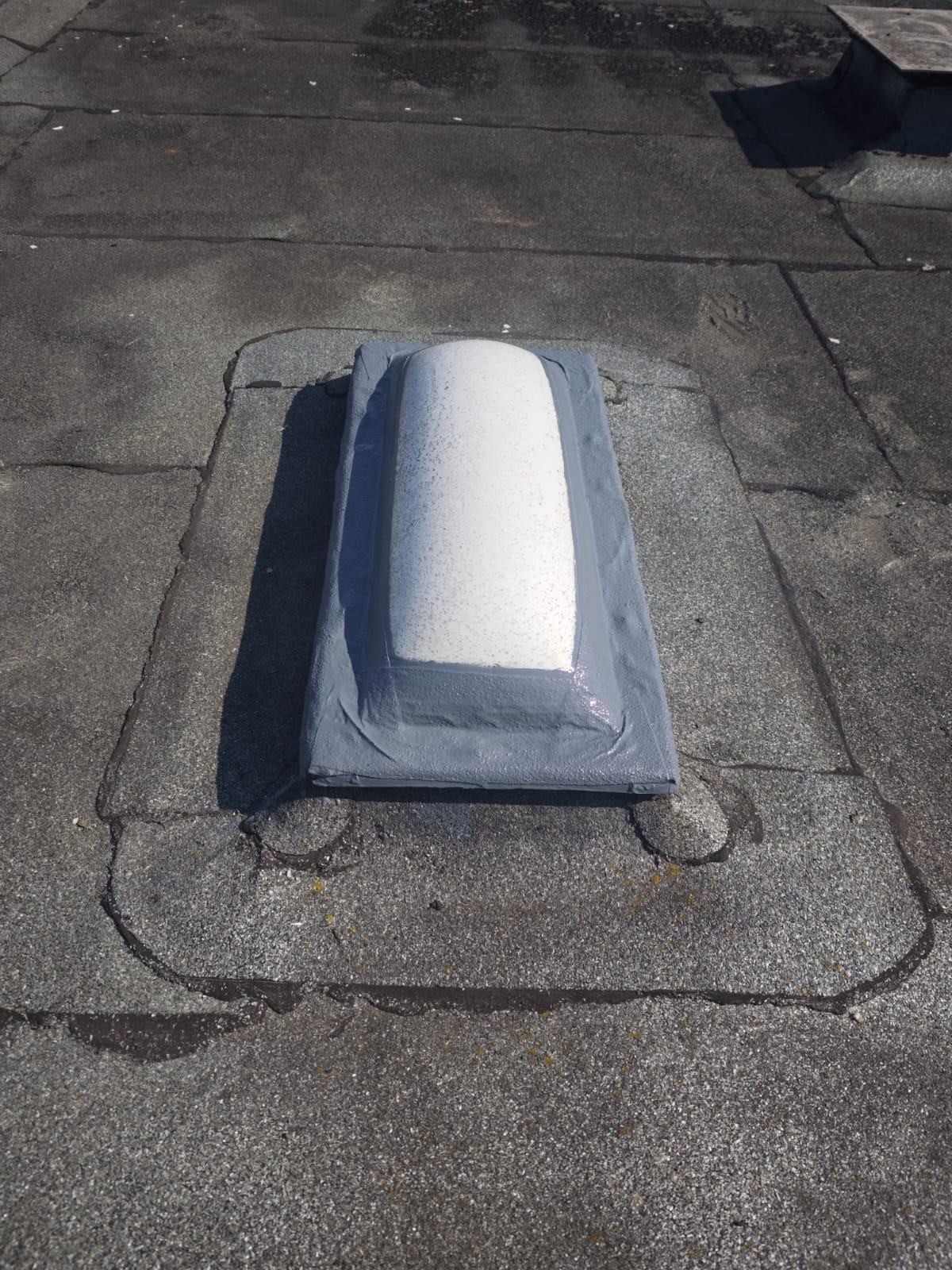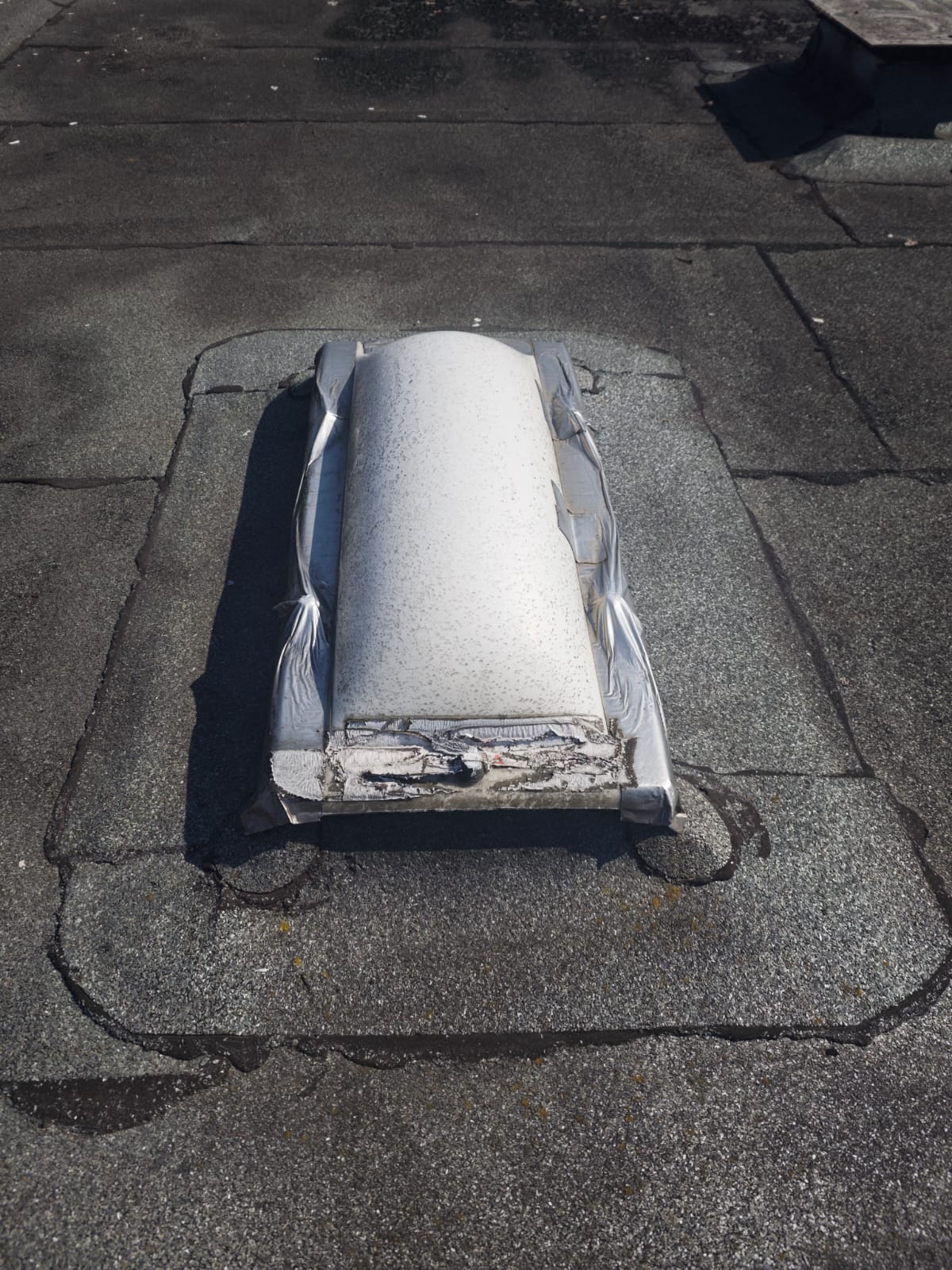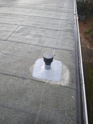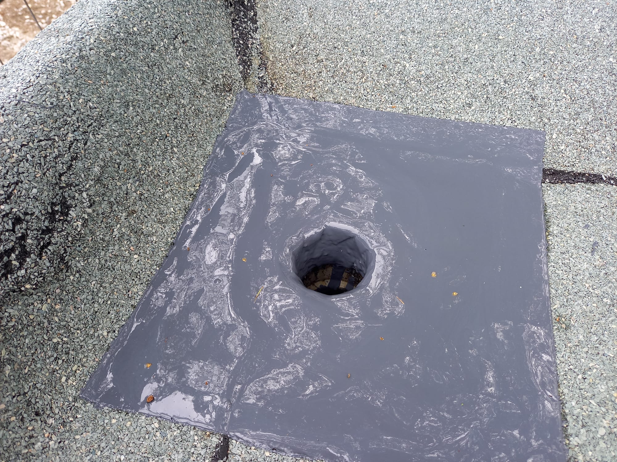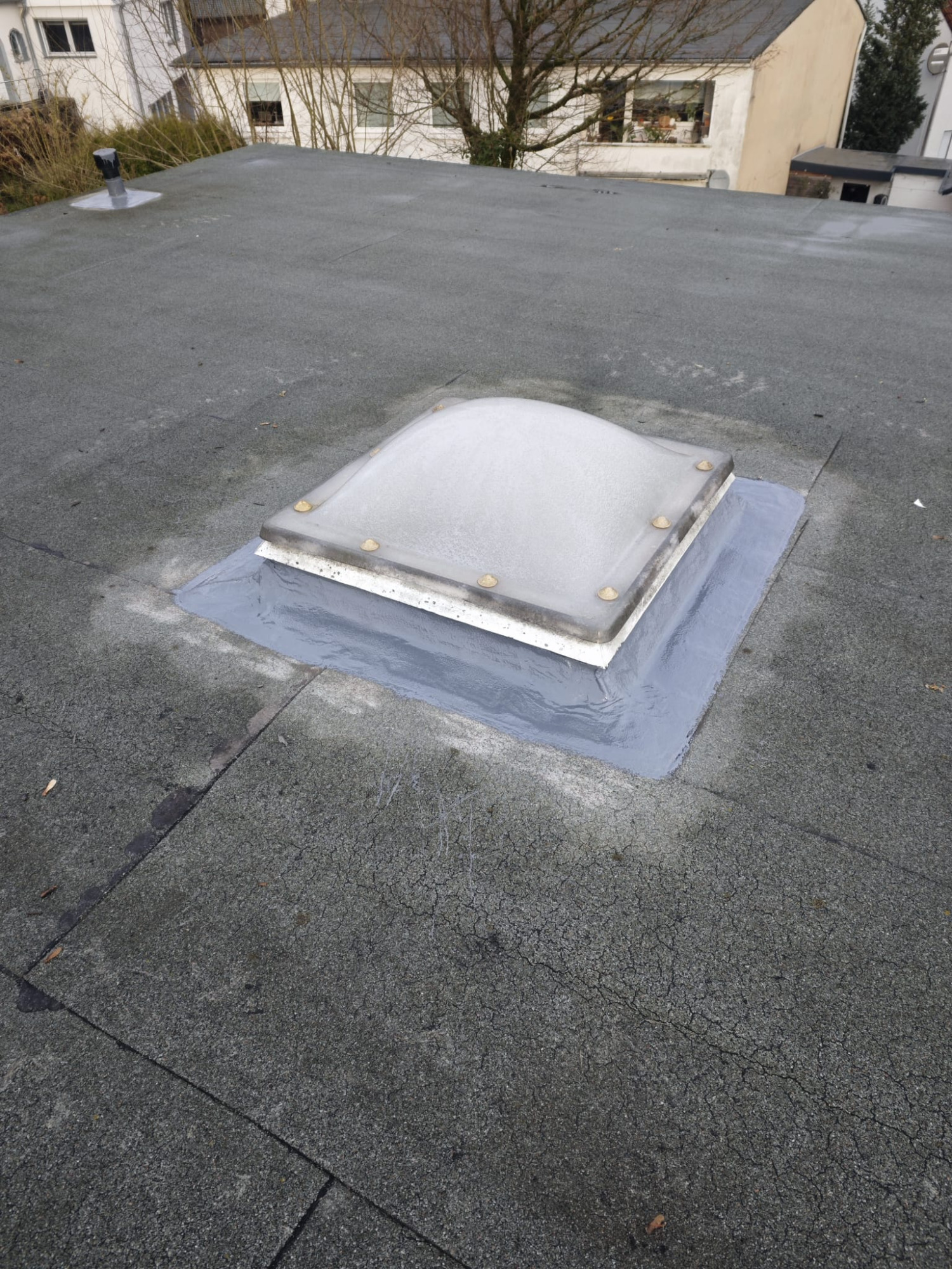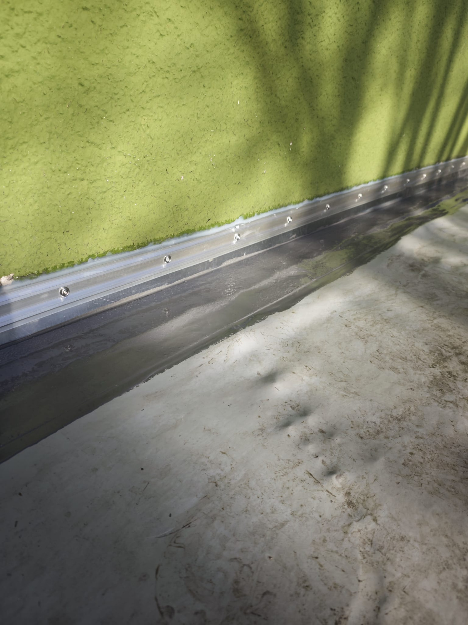 Undichter Wandanschluss und Geländerfüße. Neu eingedichtet mit Flüssigkunststoff.
